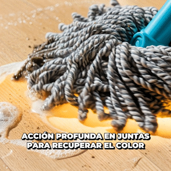 Lo más satisfactorio es ver las juntas cambiar. Su fórmula ayuda a limpiar dentro de la porosidad, removiendo moho, hongos y residuos orgánicos que oscurecen. Ideal si quieres que tu piso se vea cuidado, no solo “medio limpio”.